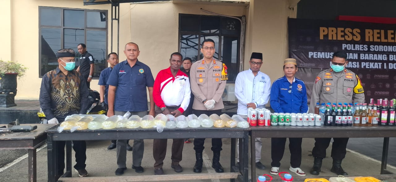 Selain itu, petugas juga berhasil menyita minuman keras ilegal dari berbagai lokasi di wilayah hukum Polres Sorong. Total minuman keras yang diamankan mencapai 282,46 liter dengan nilai sekitar Rp25.152.000.