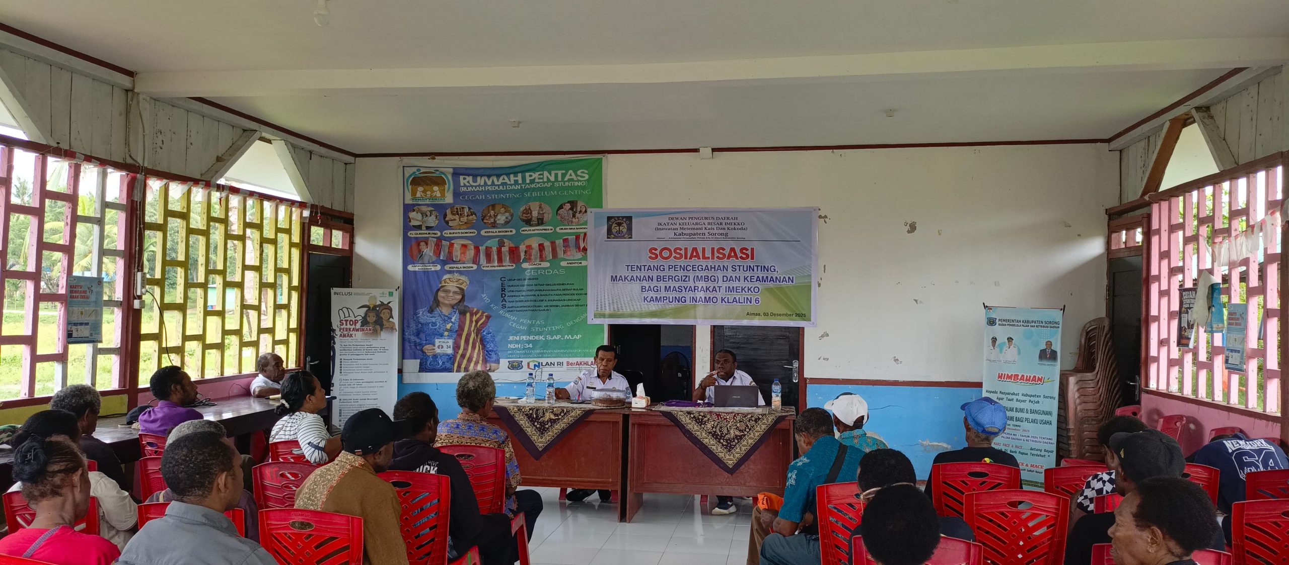 Sosialisasi yang dimulai pukul 09.00 WIT ini menghadirkan pemateri dari Dinas Kesehatan Provinsi Papua Barat Daya, Ismail Orbure, yang membawakan materi mengenai strategi pencegahan stunting serta pentingnya pemenuhan gizi seimbang bagi keluarga.